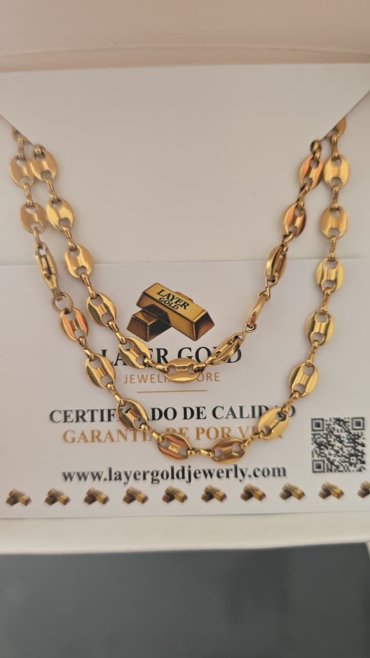 Combo de Cadena y Pulsera de Oro Laminado Italiano 18K con diseño clásico y acabado brillante. Combina elegancia y durabilidad. Una pieza resistente que mantiene su belleza a lo largo del tiempo, ideal para realzar cualquier look. Todas nuestras joyas son contramarcadas en sus broches (por un lado el doble lingote que nos identifica y por le otro el 18K).